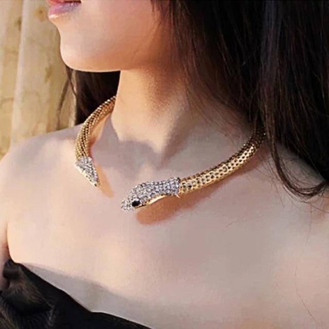 首に巻き付く可愛いヘビのネックレスです。 付けるとペットみたいで可愛いです。 頭と尾の部分が開いて着脱できます。 長さ 約50㎝ 素材 合金 ラインストーン 海外製のため、日本製と比べますと作りが粗い部分もございますので、ご理解いただける方。 蛇 スネーク 金色 へび 衣装 首輪 キラキラ クリスタル