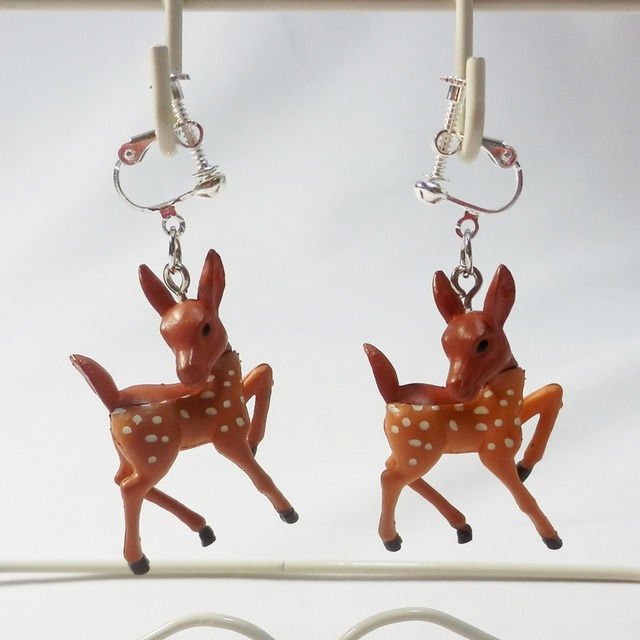 可愛らしい子鹿のイヤリングです。 ファンタジーで素敵です。 カラー 茶色 金属はシルバー 材質 合金 プラスチック等 海外製のため、日本製と比べますと作りが粗い部分もございますので、ご理解いただける方。 バンビ シカ ブラウン アニマル 動物 イアリング ロリータ 普通郵便で発送予定です。