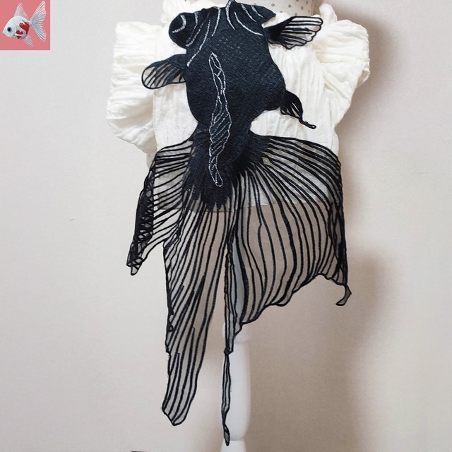 オフホワイトの兵児帯に、刺繍で出来た黒い大きな金魚が付いています。 かなりの大きさの金魚で目立ちます。 ボリュームのあるシワ加工の帯で、大人用サイズです。 帯部分サイズ 約380cm×30cm 素材 ポリエステル等 ※多少の作りの粗い部分もございますので、ご理解いただける方。 ゴールドフィッシュ きんぎょ 着物 浴衣帯 ブラック 生成 キナリ クリーム へこ帯 クリックポストで発送予定です。