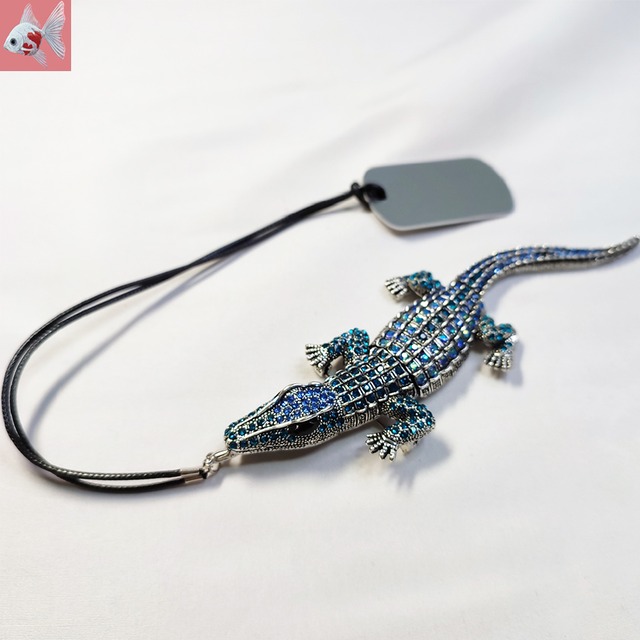 可愛いキラキラワニの根付けです。 ボディー全体にラインストーンが付いていて綺麗です。 シルバーの金属にブルー系のラインストーンで、目は黒です。 胴体と尾っぽのつなぎ目で多少動きます。 プレートを帯に差し込んで使います。他のストラップに変える事も出来ます。 チャームはペンダントトップやブローチにも使えます。 男性の方もどうぞ。 チャーム部分サイズ 約14cm × 4.5cm 重さ 約50g 材質 合金 ラインストーン 紐はフェイクレザー 多少作りの粗い部分もございますので、ご理解いただける方。 帯飾り 爬虫類 crocodile クロコダイル アニマル 動物 トカゲ 和装小物 着物 根付 キーホルダー メンズ 男性用 青 水色 クリックポストで発送予定です。