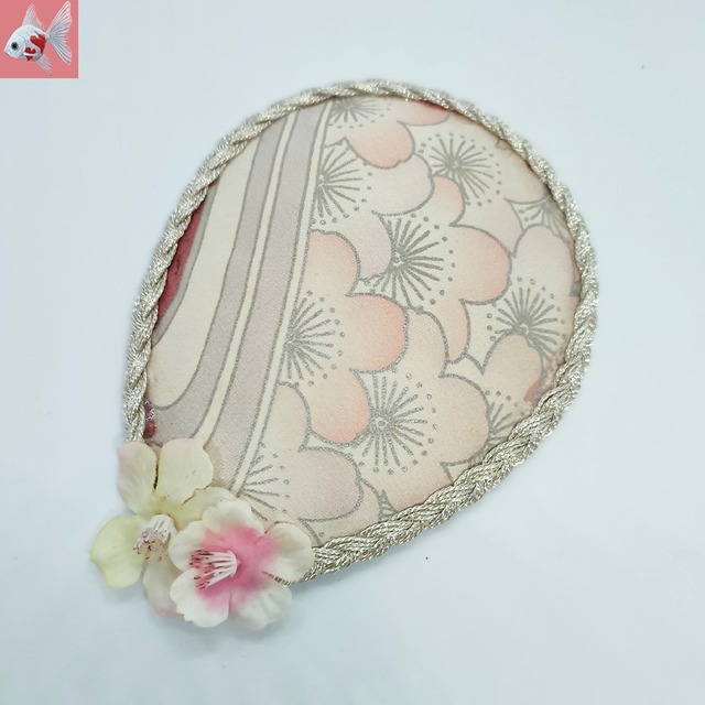 色留袖と桜の造花を使った、素敵なヘッドドレスです 裏側のクリップで留めて着用します。 ※着物生地は中古の素材を使用しています。(クリーニング済) ハンドメイド品になりますので、ご理解のある方。 サイズ 約14cm×10cm 髪飾り 衣装 ミニハットサクラ フラワー 和装 ピンク sakura ミニ帽子 着物 cherry blossoms クリックポストで発送予定です。