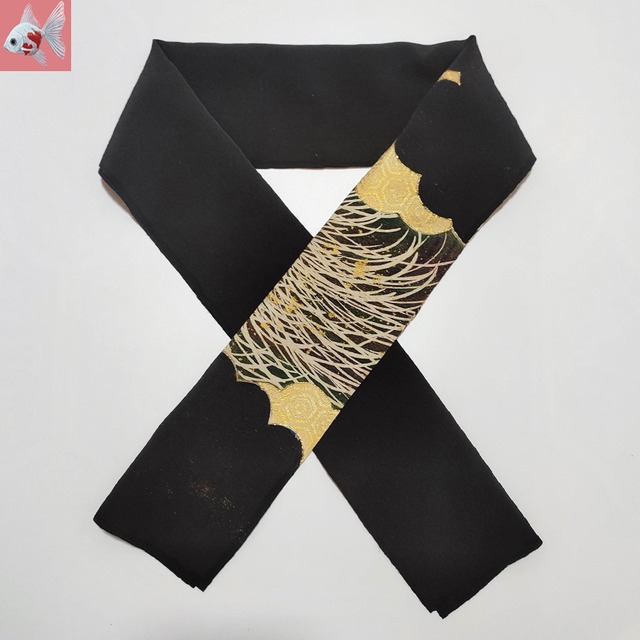 黒留袖の柄の部分を使った半襟です。 抽象画のような豪華な柄が素敵です。 衣装用にもオススメです。 ※中古着物(クリーニング済)を使用しており、多少の経年劣化はございます。 ハンドメイド品になりますので、ご理解のある方。 サイズ 約100cm × 16cm 着物の素材 化繊だと思います。 ブラック 半衿 和装小物 着物 クリックポストで発送予定です。
