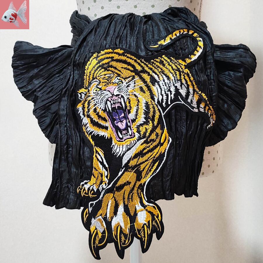 黒の兵児帯に、刺繍で出来たカッコいい虎が付いています。