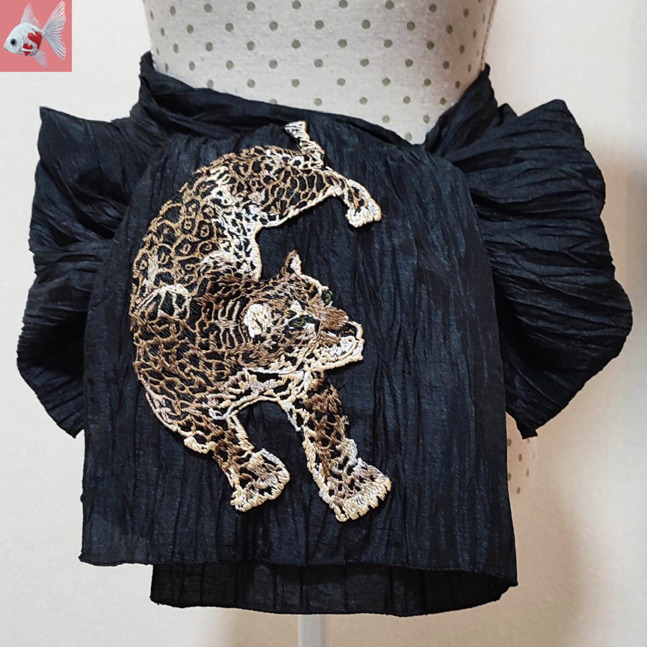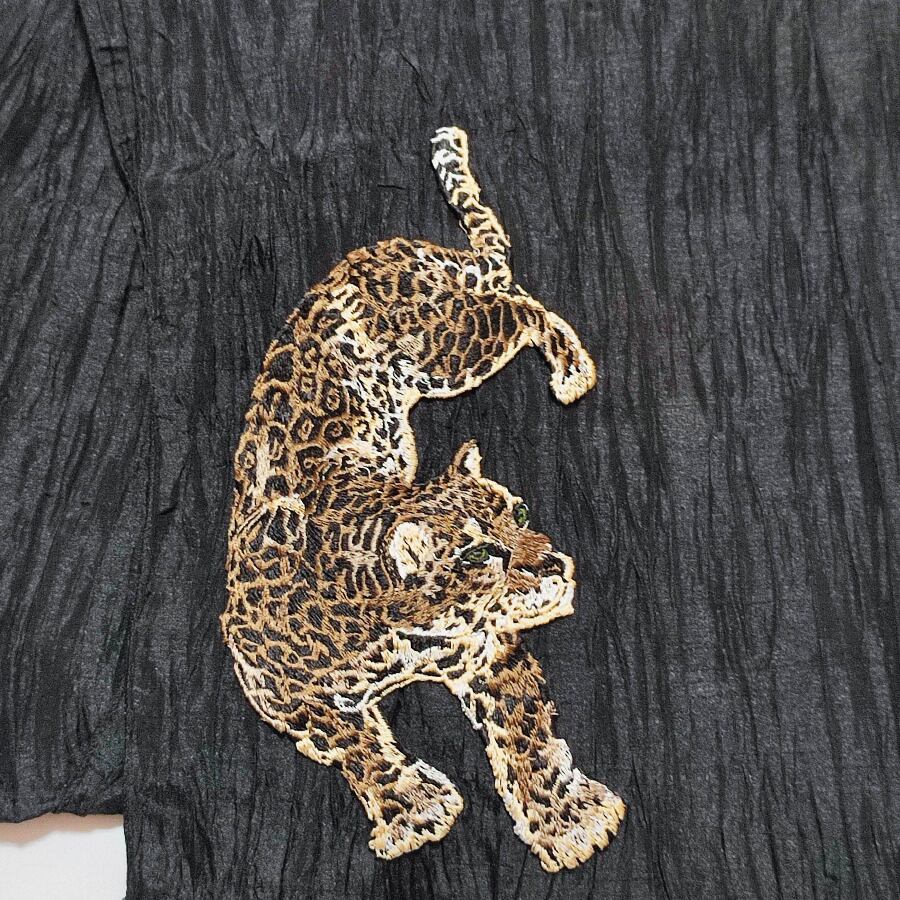 黒の兵児帯に、刺繍で出来た可愛い豹が付いています。