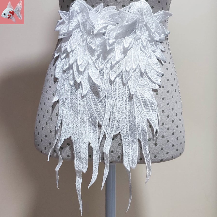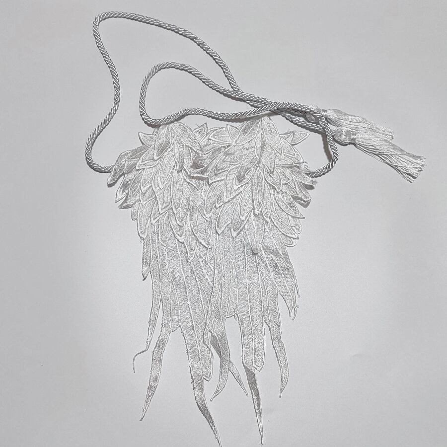 立体の刺繍が素敵な、天使の白い翼の帯飾りです。
