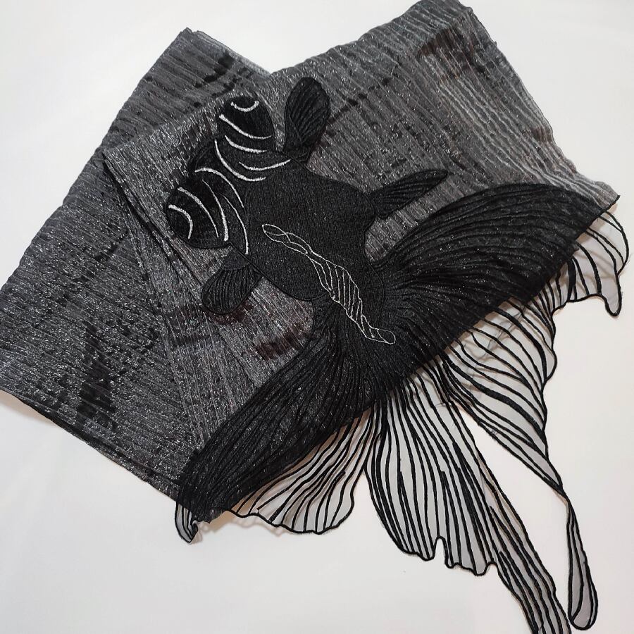 ◆ビッグ金魚のしわ兵児帯③ ブラック