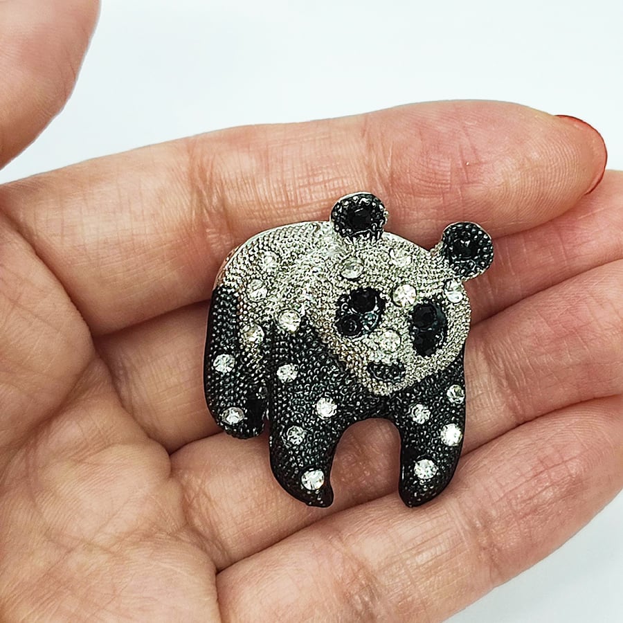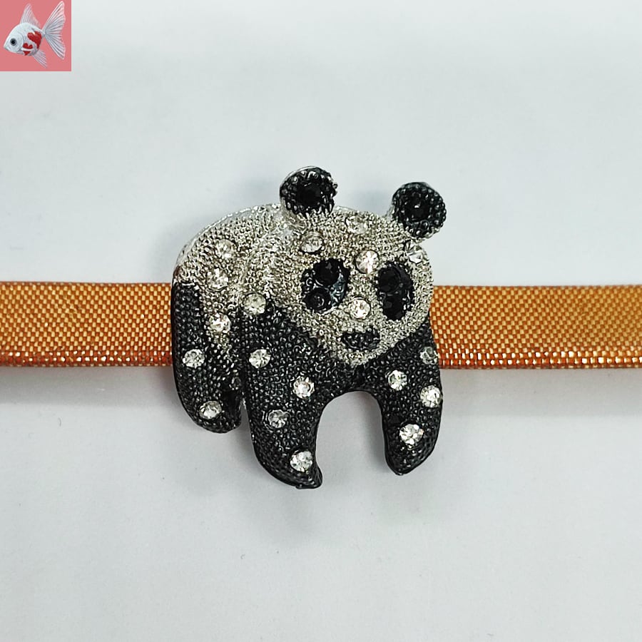 ラインストーンが付いたパンダの帯留め飾りです。