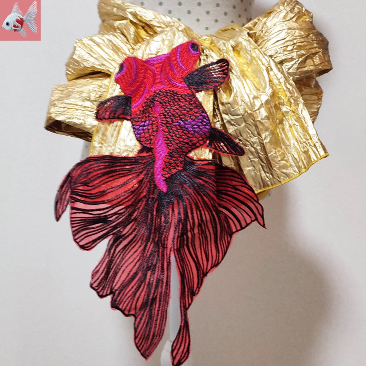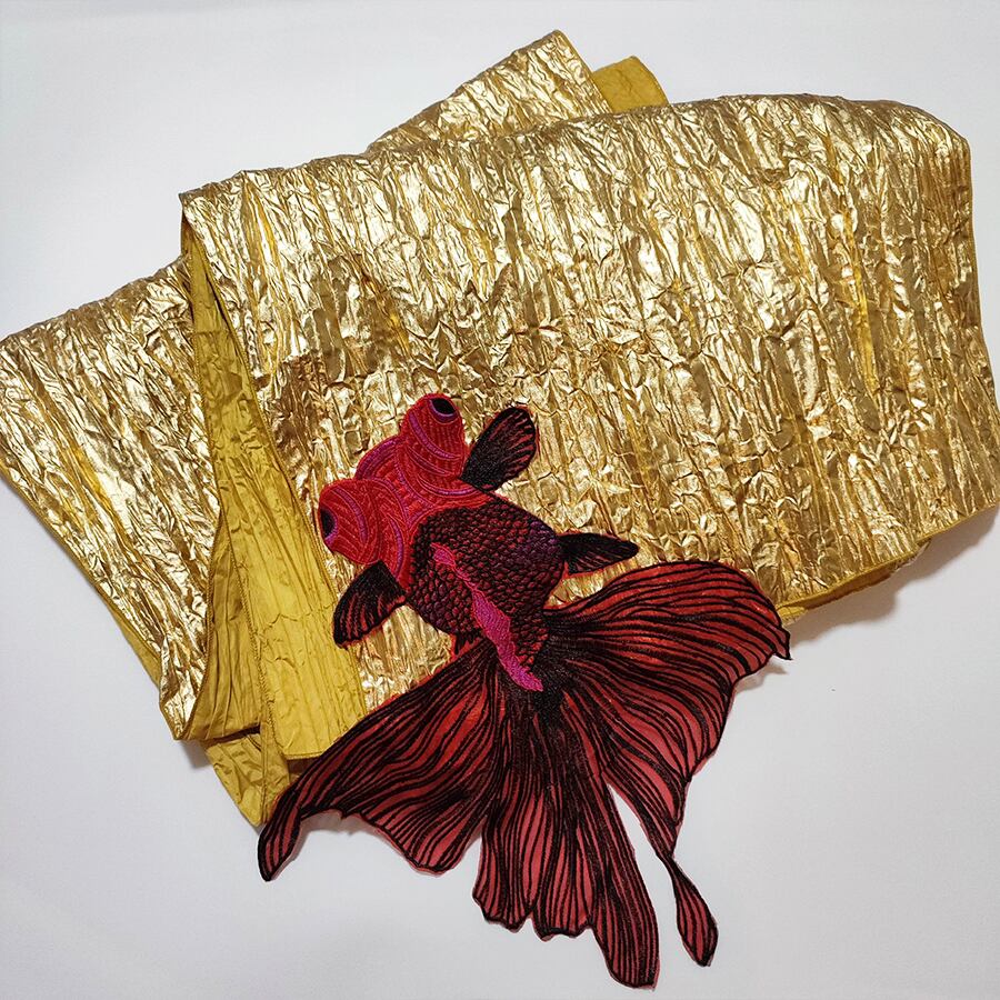 ◆メタリックゴールドの金魚の兵児帯①