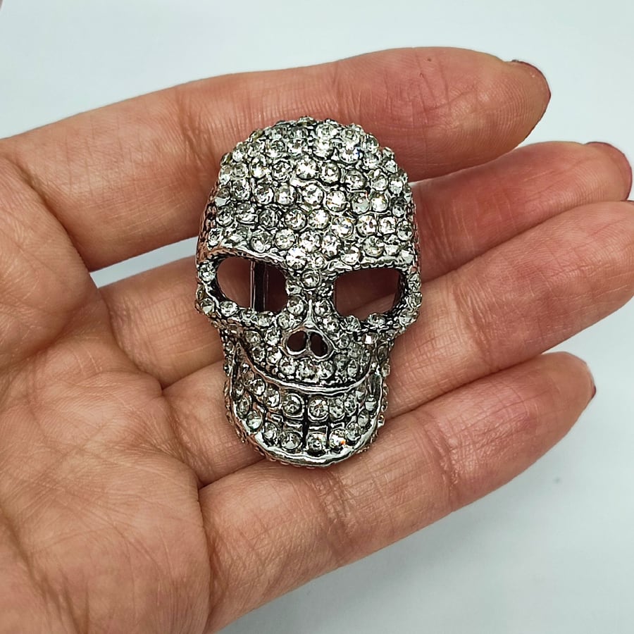 全面ラインストーンのスカルヘッドの帯留め飾りです。