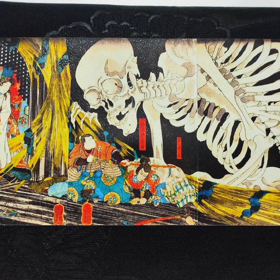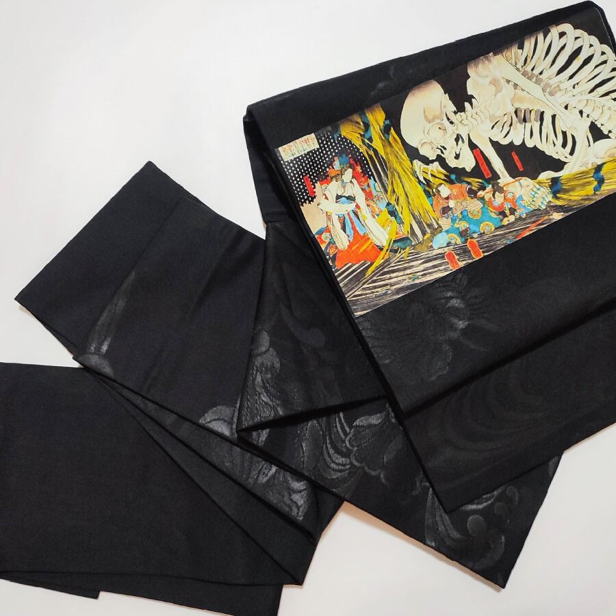 歌川国芳・相馬の古内裏の黒の名古屋帯です。
