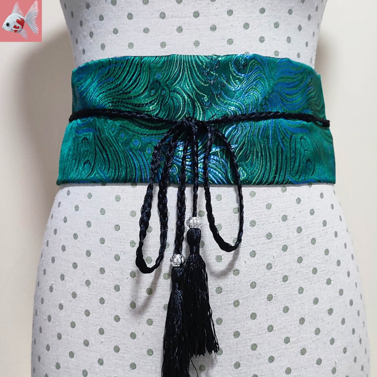 美しい孔雀の織物生地の素敵な和装ベルトです。