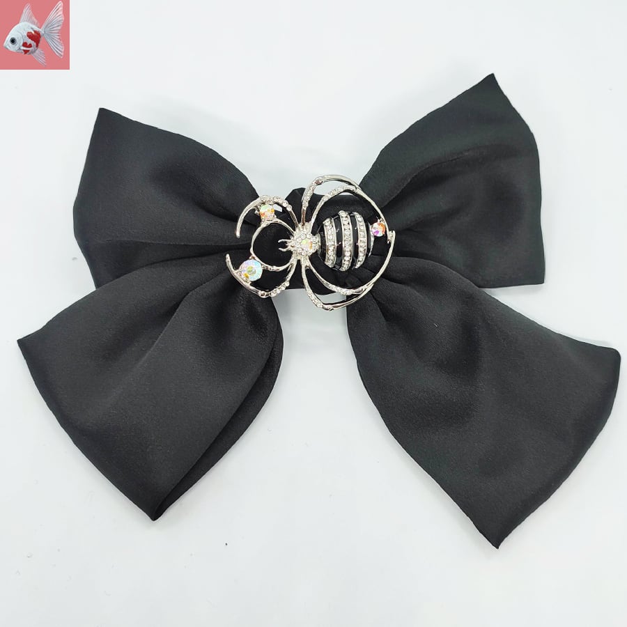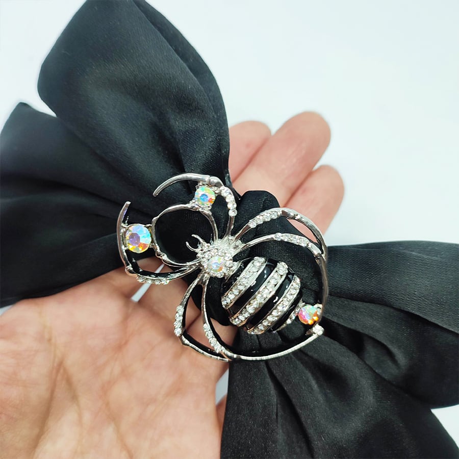 美しい蜘蛛のブローチが付いた、黒のビッグリボンです。
