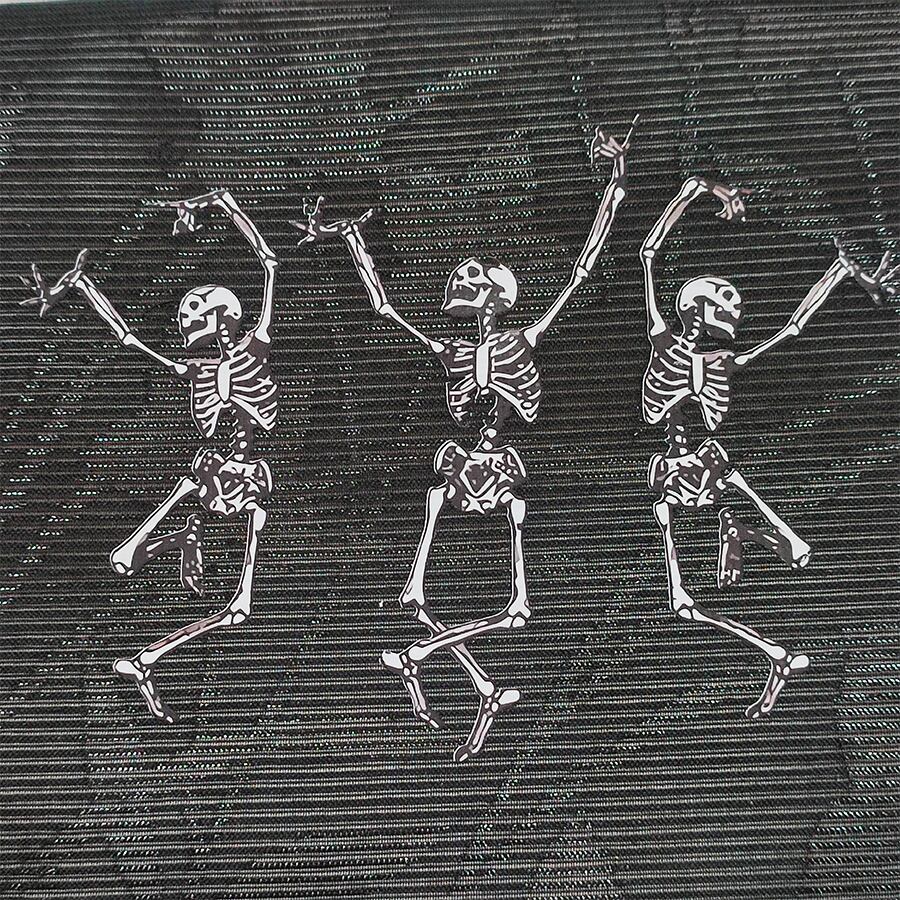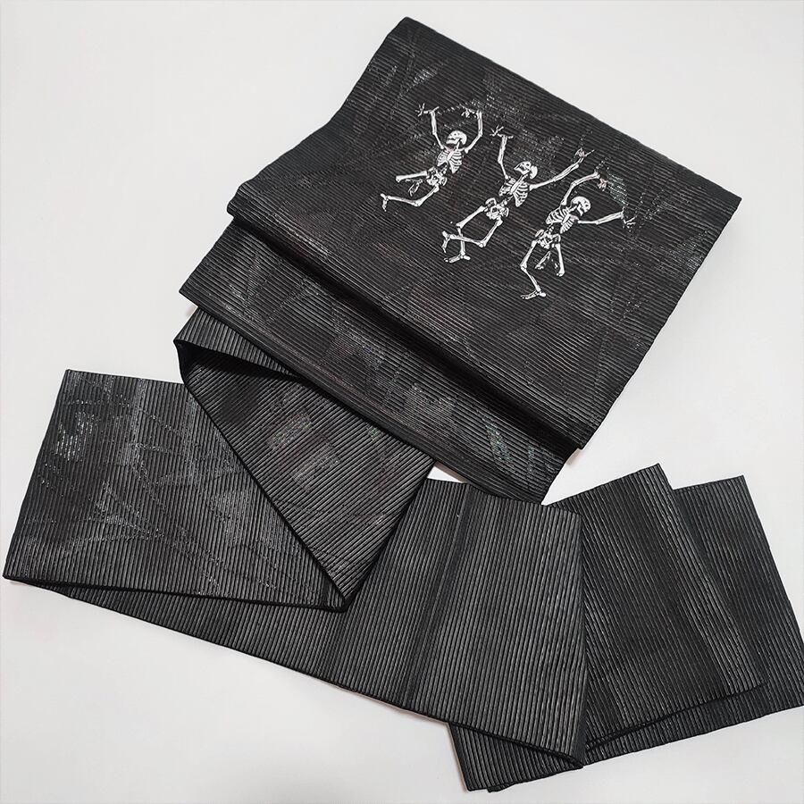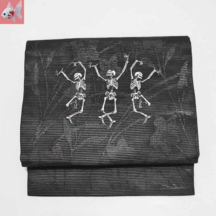 踊るスカルがプリントされた、黒の名古屋帯です。