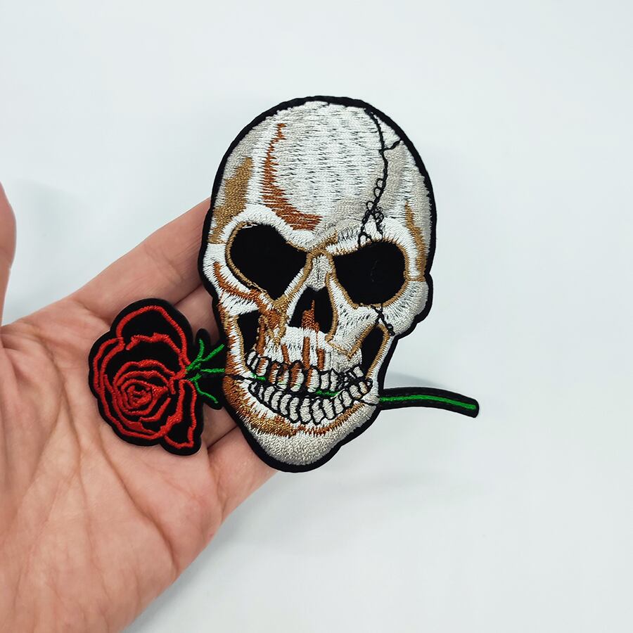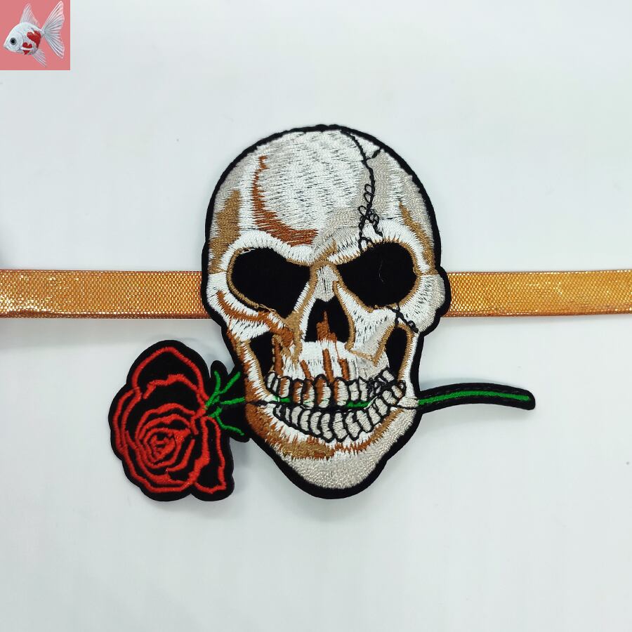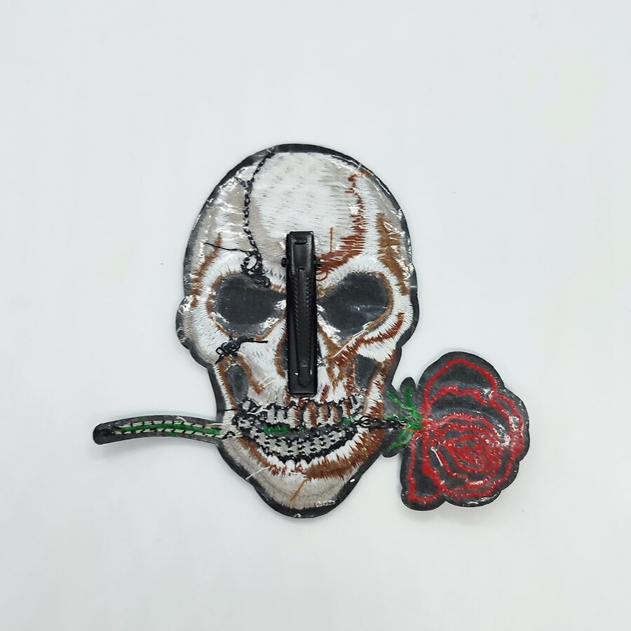 ◆スカルと薔薇の刺繍帯留め飾り①