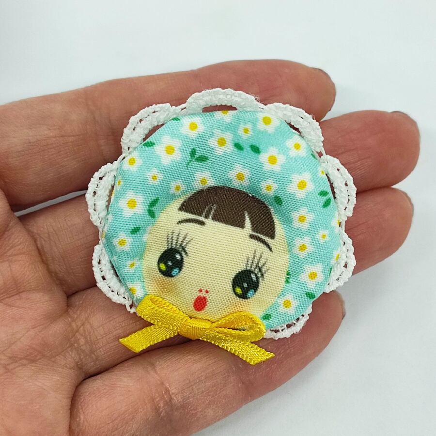 可愛い文化人形のお顔の帯留め飾りです。