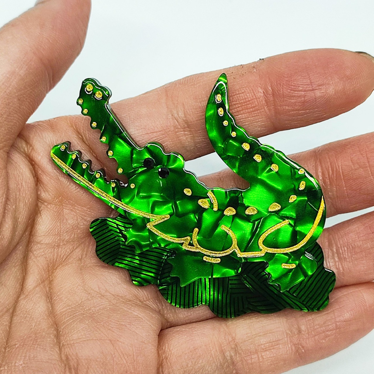 ◆アクリルワニの帯留め飾り①