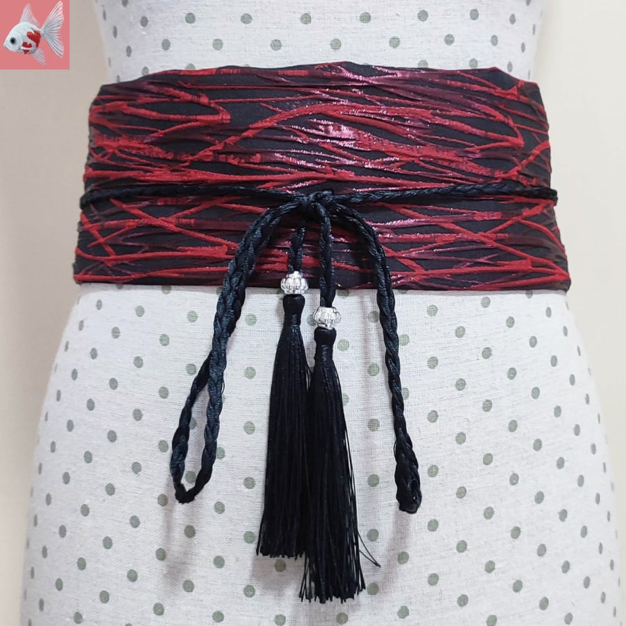 黒地に赤い線柄の和装ベルトです。