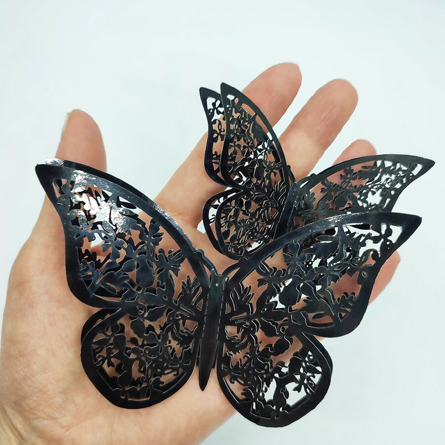 立体的な羽が素敵な、切り絵のようなカットの黒い蝶のヘアクリップです。