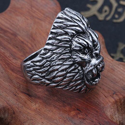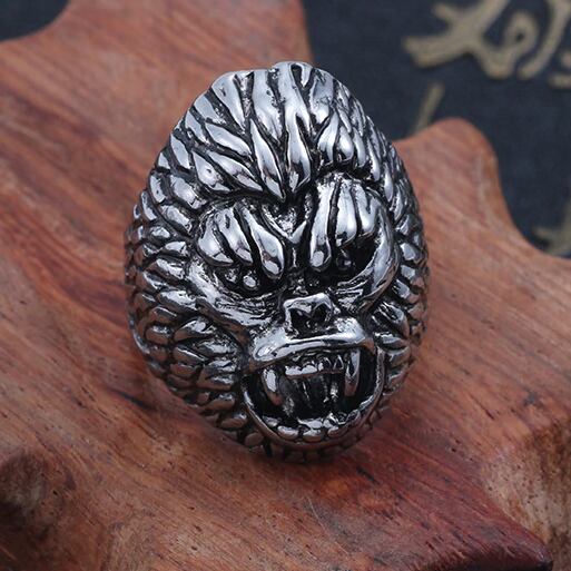 ゴリラが吠えているデザインの、ごつくてカッコいいリングです。