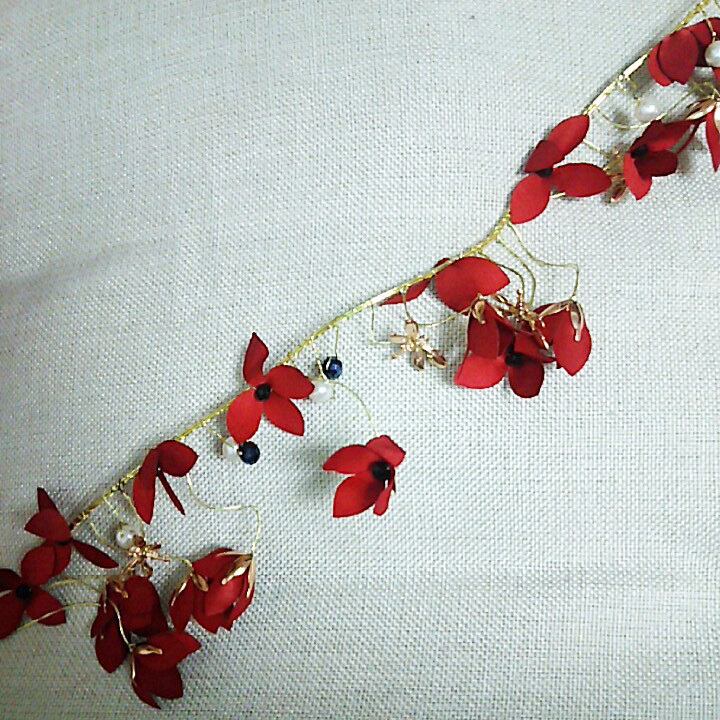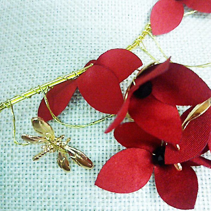 赤い小花と可愛らしいトンボが付いた、素敵なヘアアクセサリーです。