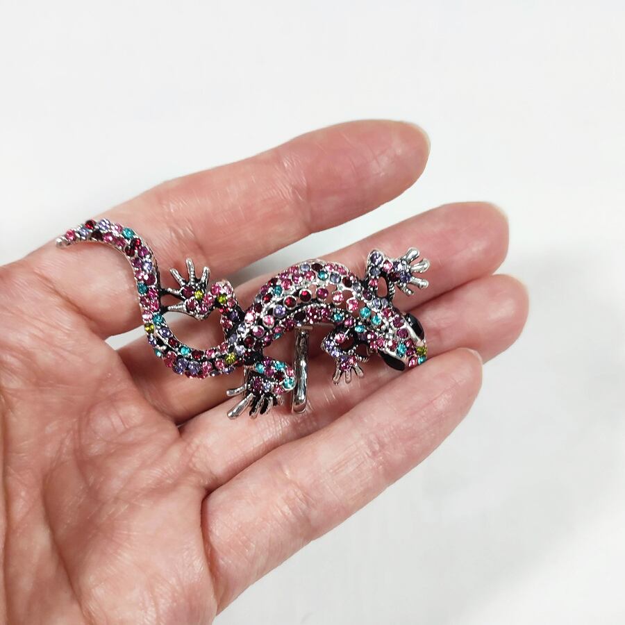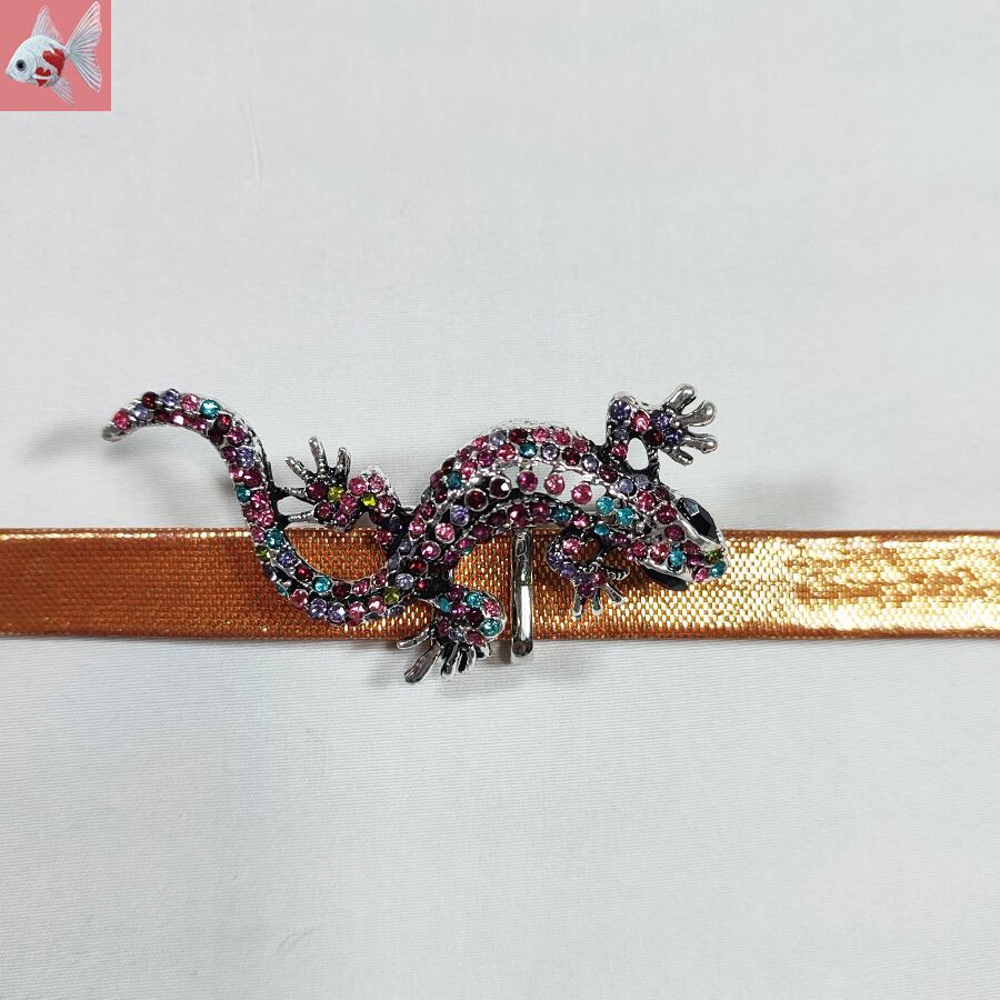 カラフルな可愛いキラキラトカゲの帯留め飾りです。