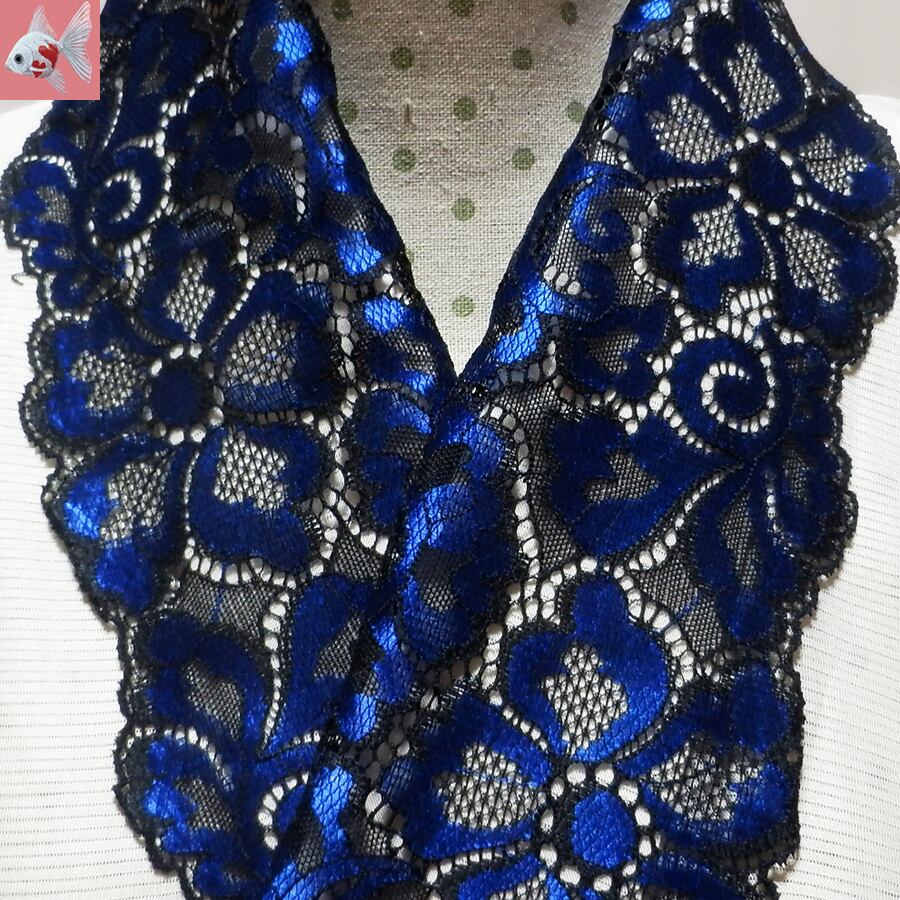 エレガントな黒と青のフラワーレースの半襟です。