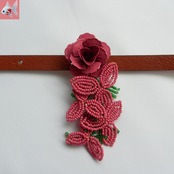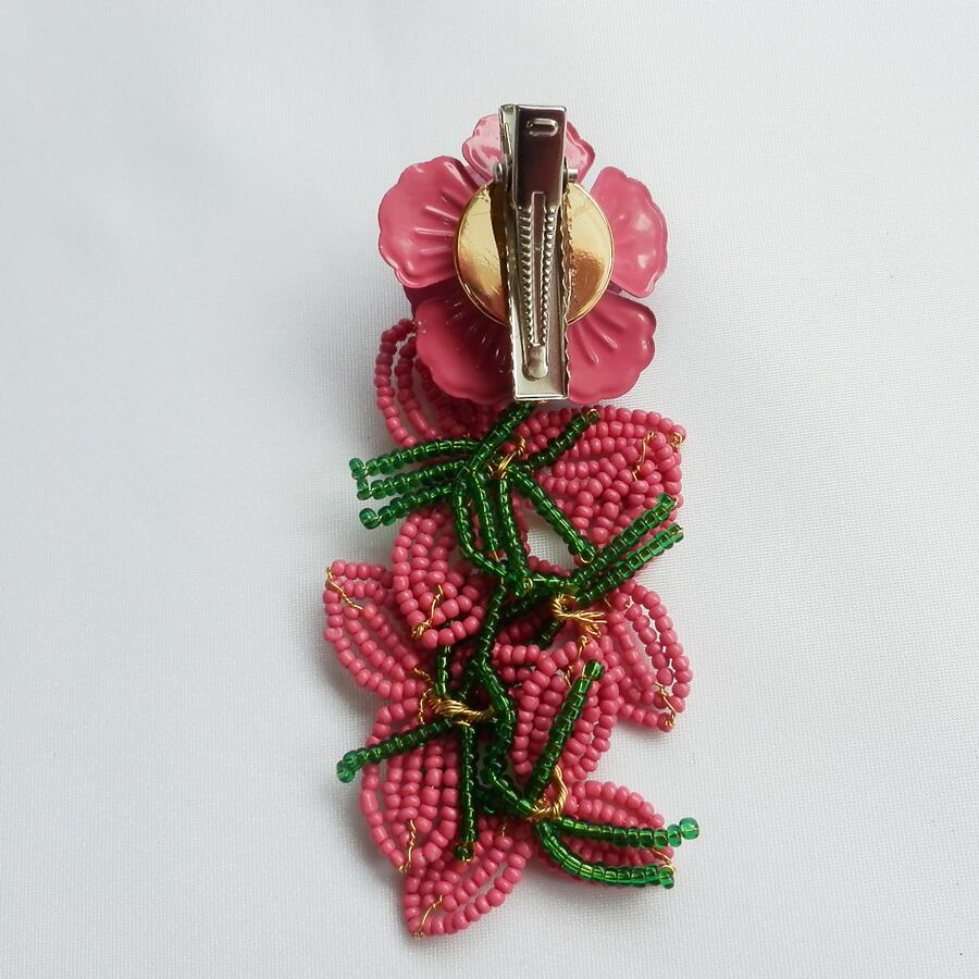 可愛らしいピンクのバラ飾りと、ビーズのお花で出来た、帯留め飾りです。