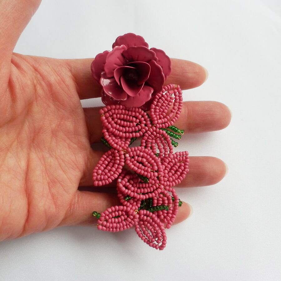 ◆バラとビーズの帯留め飾り