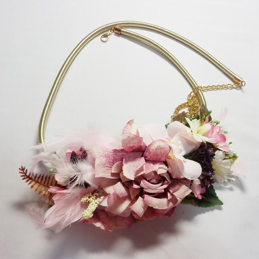 ピンクローズメインで、羽根や実等付いていて、とても素敵です。