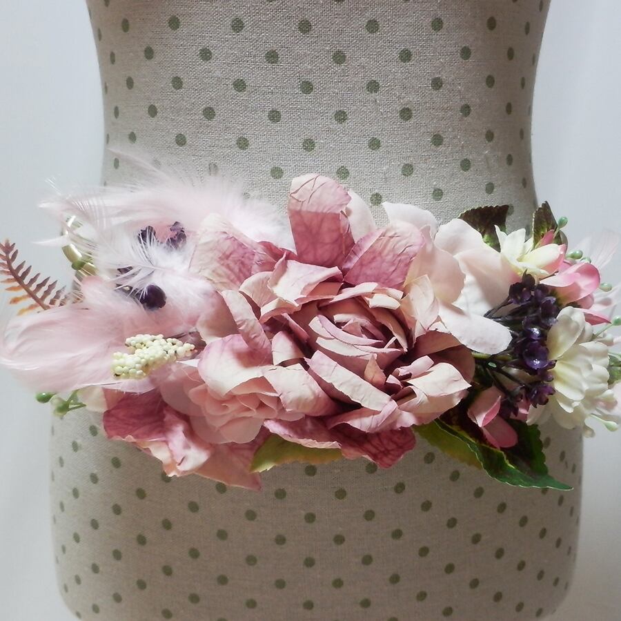 立体のお花がたくさん付いた、大きめの華やかなベルトです。