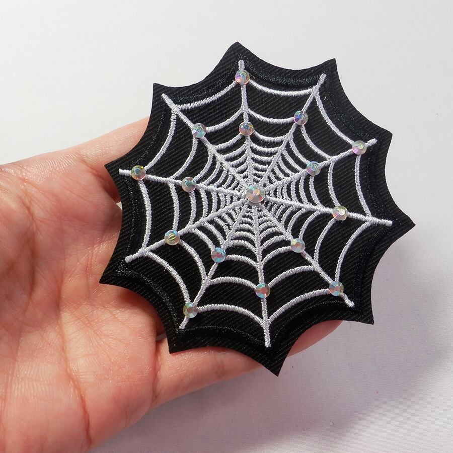 カラー 黒に白いクモの巣 ストーンはオーロラ