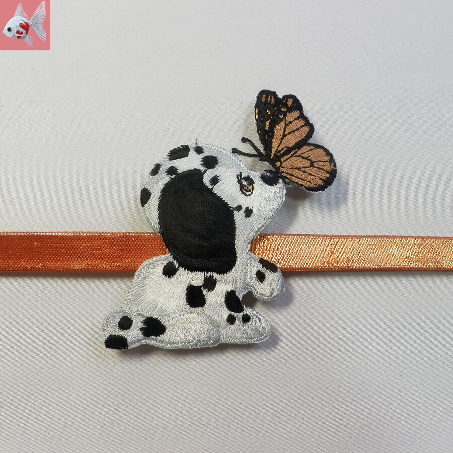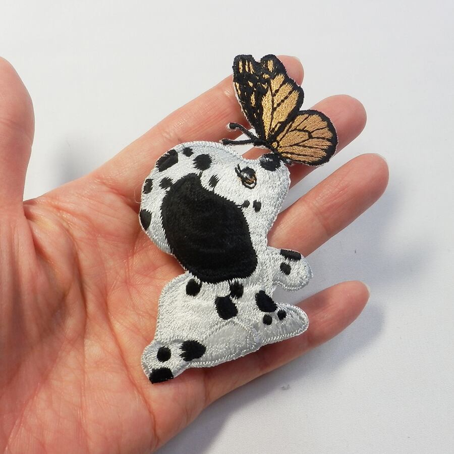 刺繍で出来たダルメシアンの子犬の帯留め飾りです。