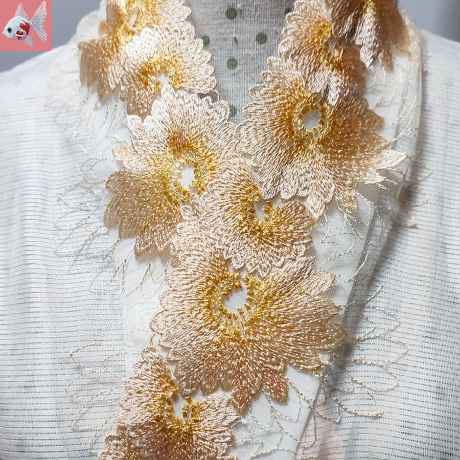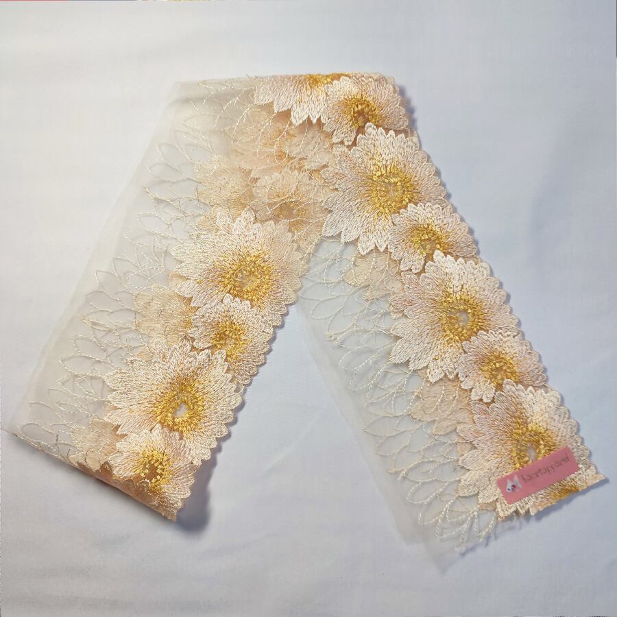 フラワー 刺しゅう 花柄 イエロー 橙色