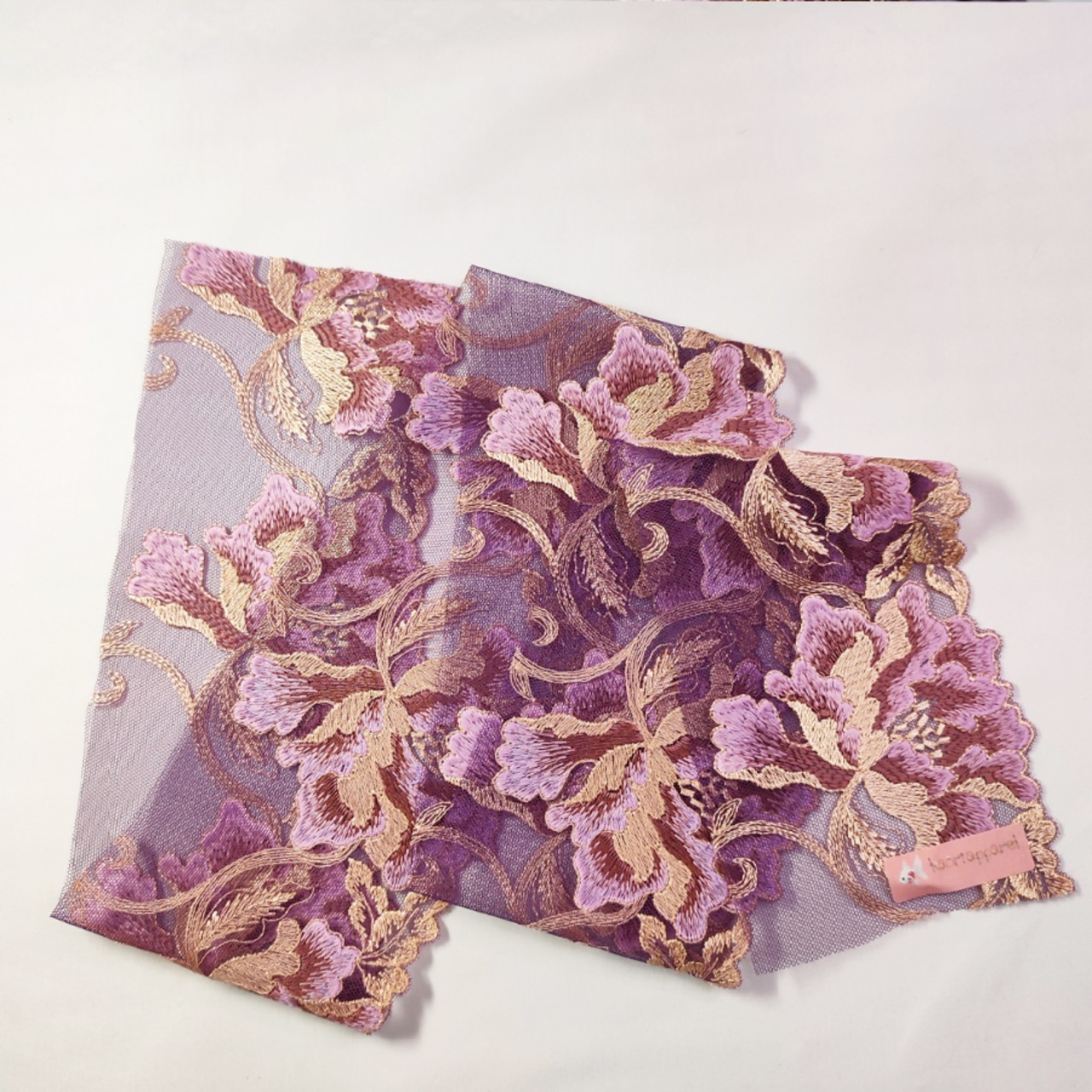 フラワー 刺しゅう ハス 花柄 むらさき パープル