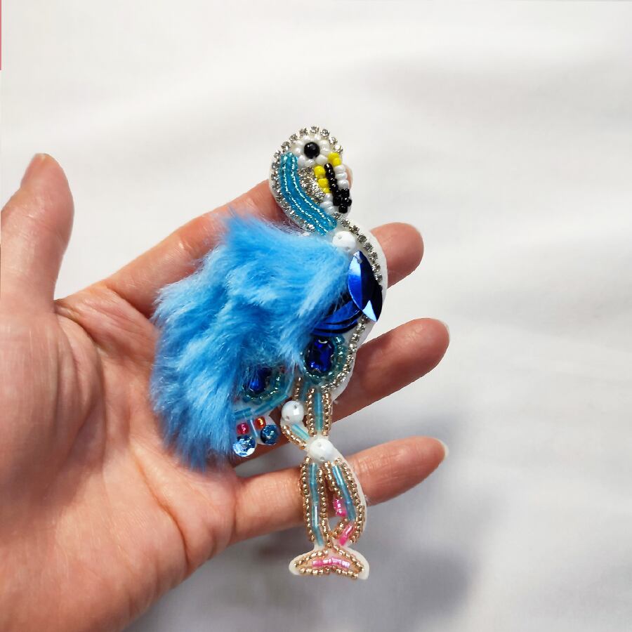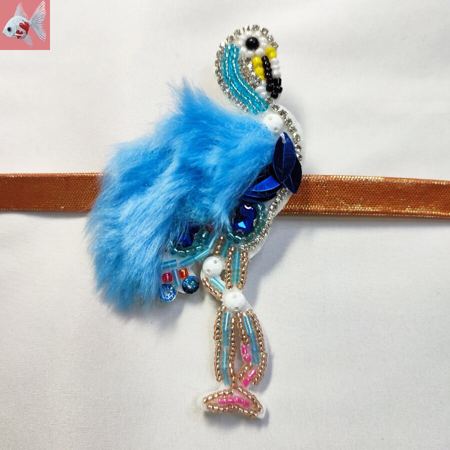 ◆フラミンゴのビジュー帯留め飾り ブルー