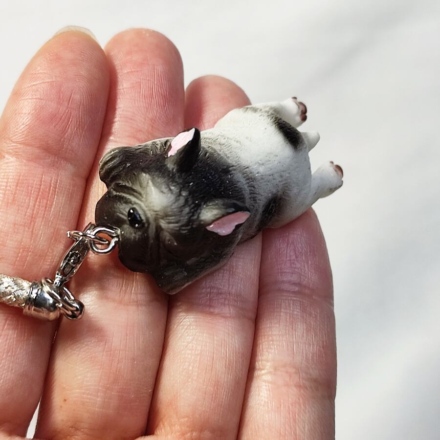 可愛いフレンチブルドッグが寝そべっている根付けです。