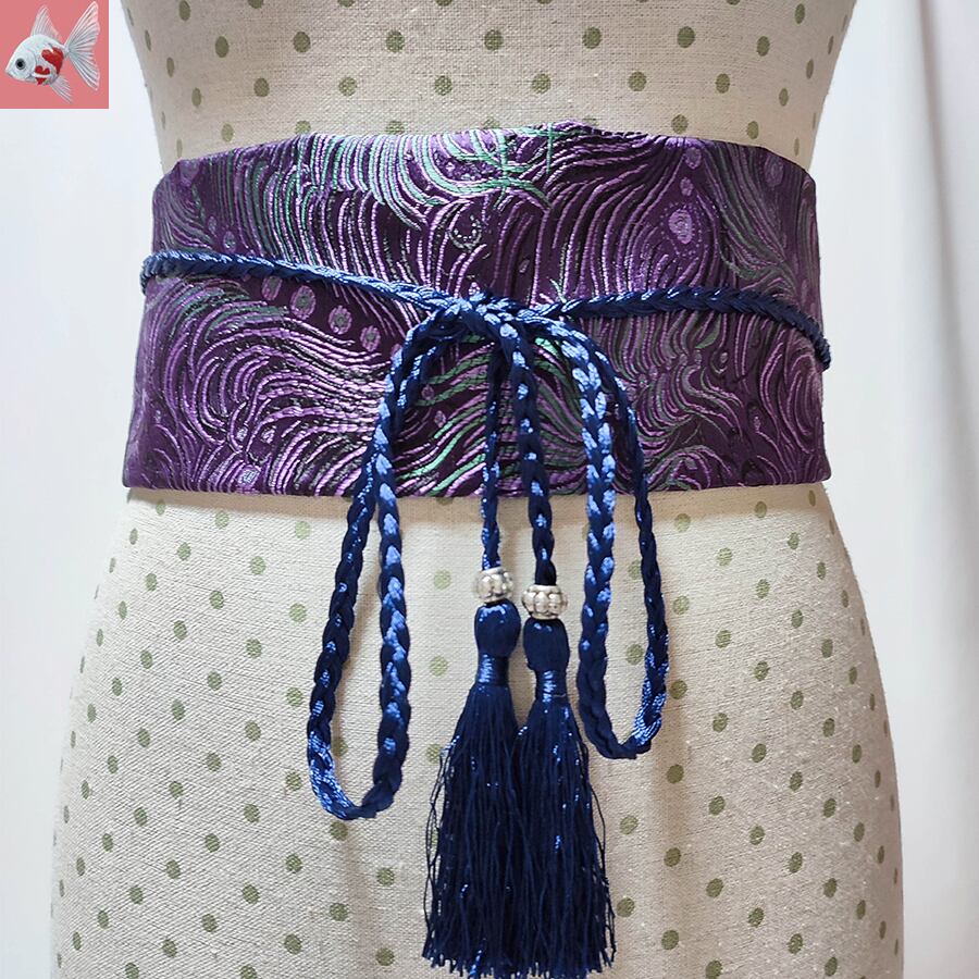 ◆クジャク柄の和装ベルト① パープル