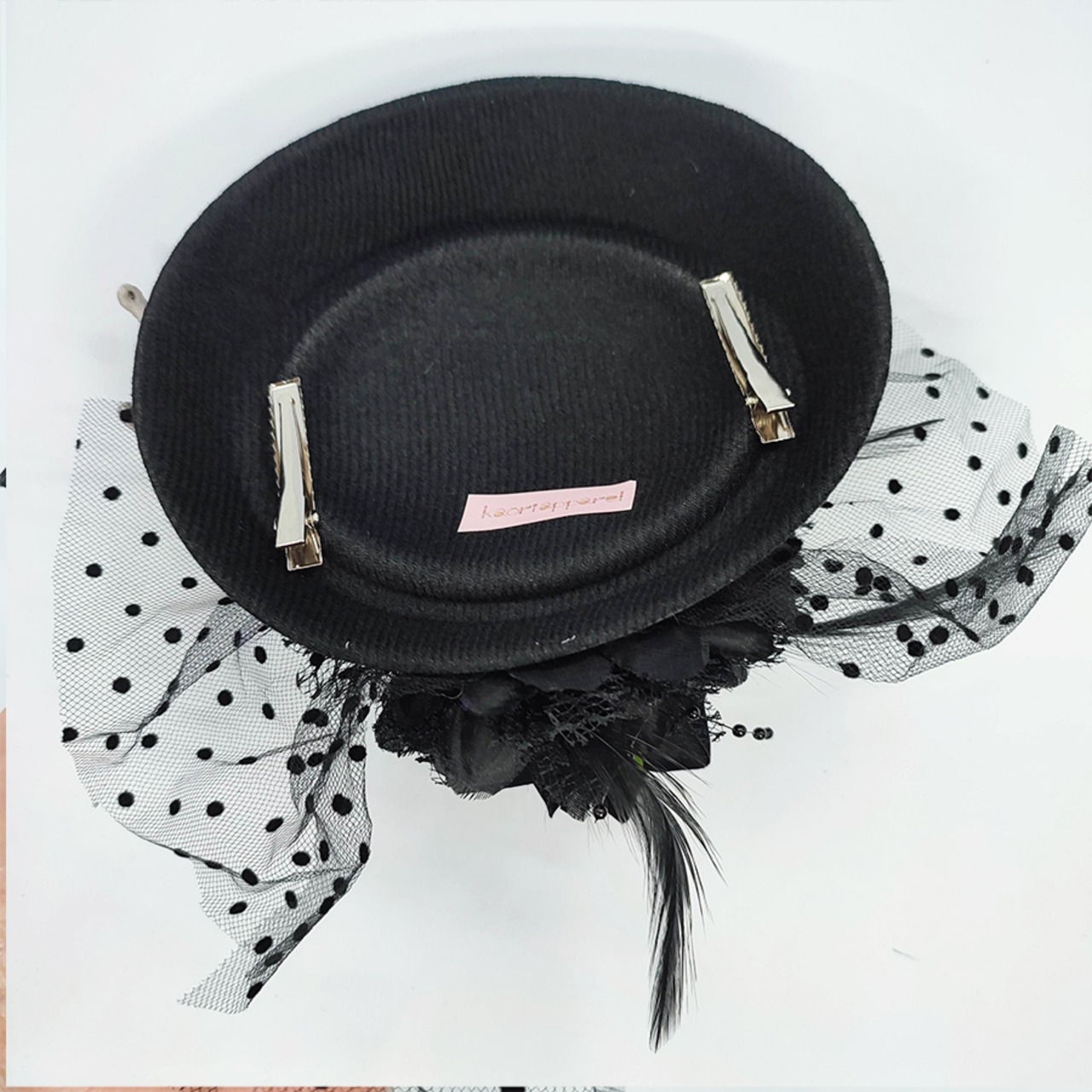 黒のミニハットに、スカルの手と黒い薔薇飾りが付いています。