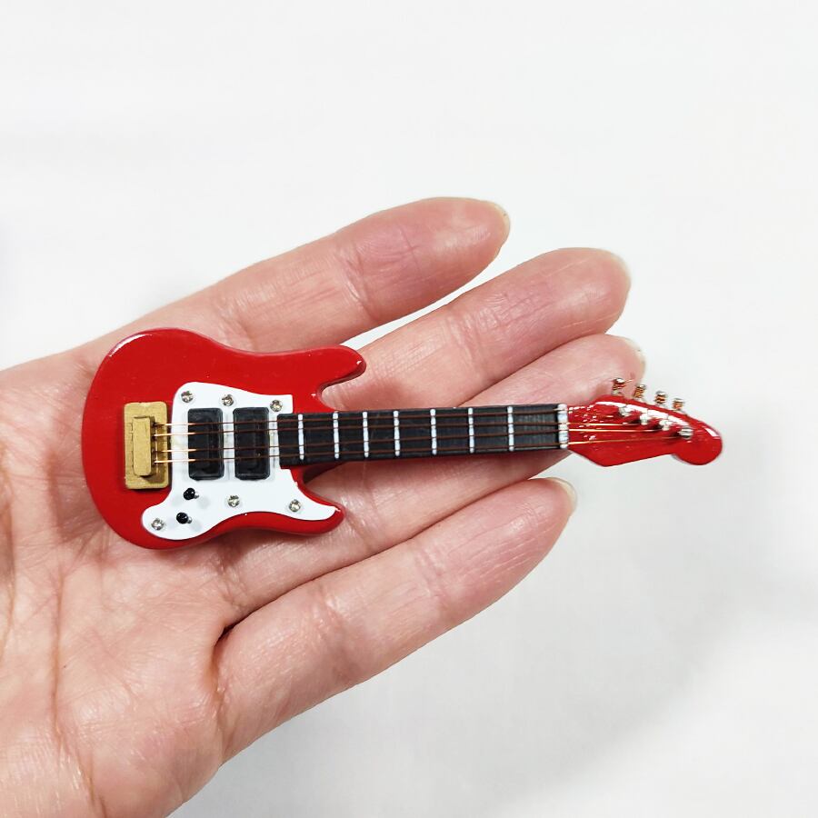 ◆ミニチュアエレキギターの帯留め飾り① レッド