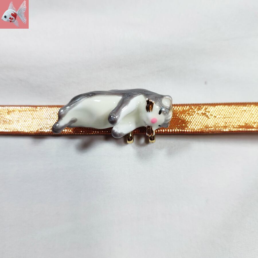 お腹を出してお昼寝している猫ちゃんの帯留め飾りです。