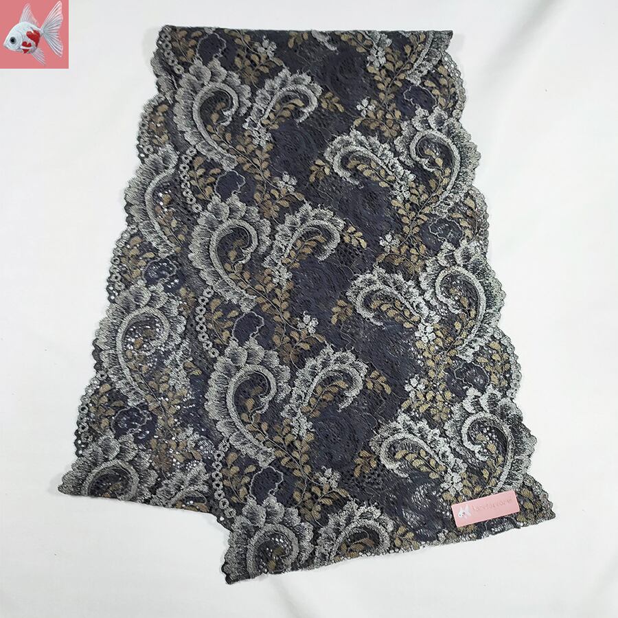 黒にグレーの植物柄が綺麗なレースの帯揚げです。