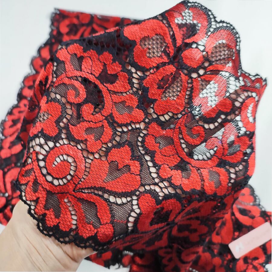 エレガントな黒と赤のフラワーレースの帯揚げです。