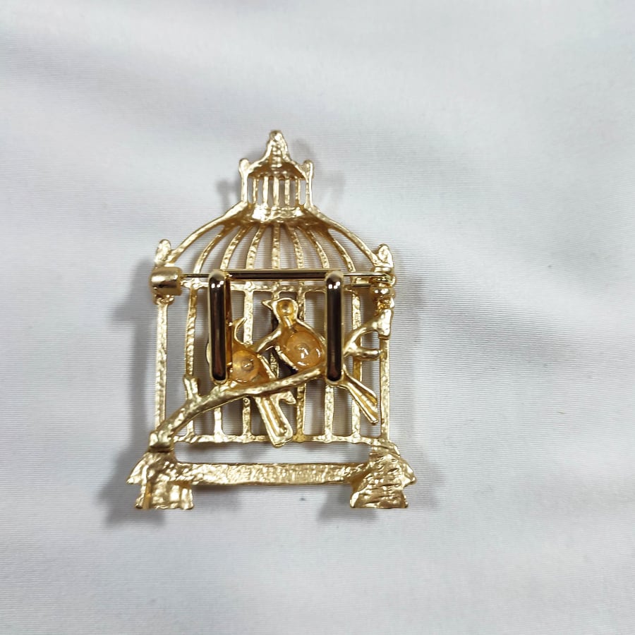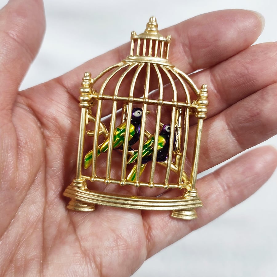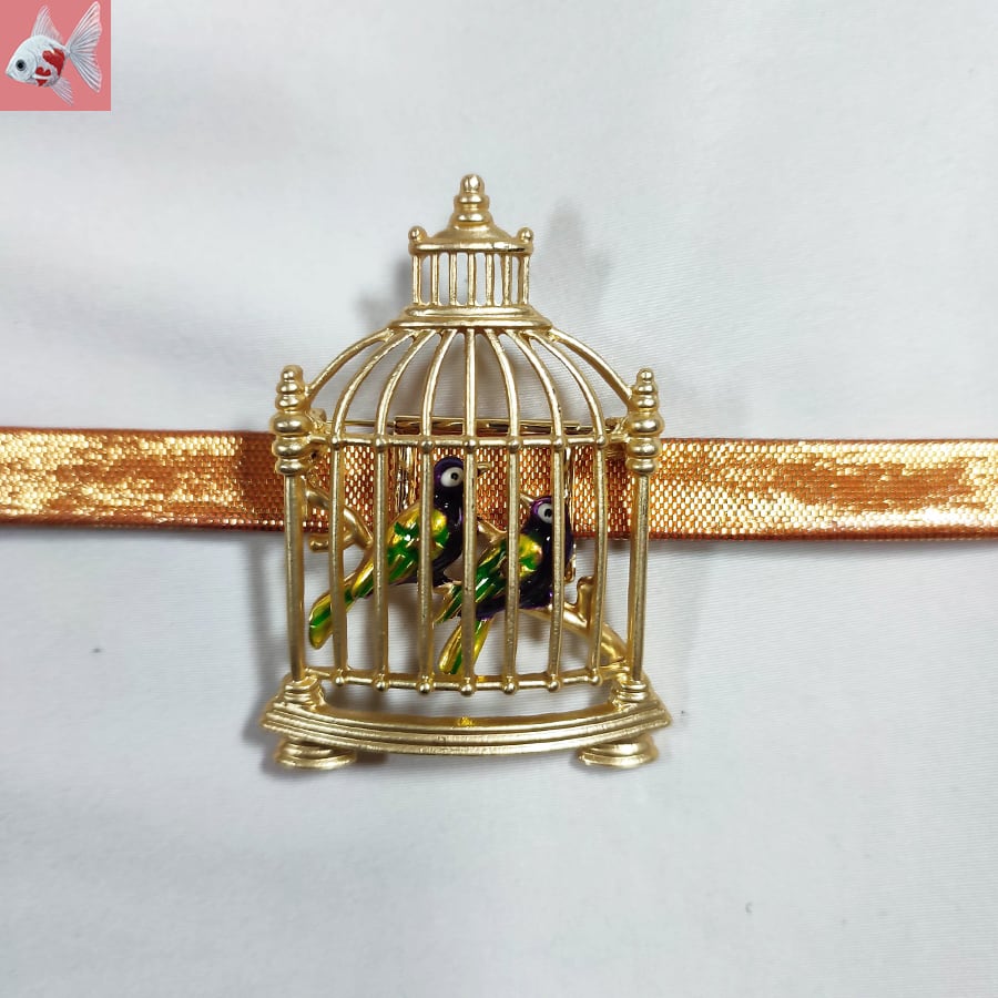 2羽の小鳥が入った可愛い鳥かごの帯留め飾りです。
