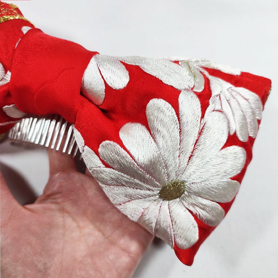 振袖の刺繍の入っている部分を使ったビッグりぼんです。