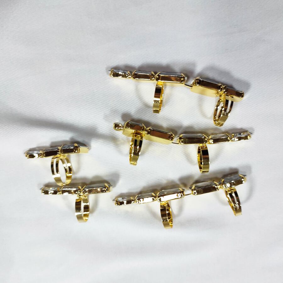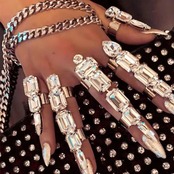 大きなラインストーンたくさん付いた、ロックなロングリングです。
