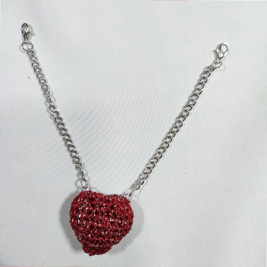編み物の赤いハートが可愛い羽織紐アクセサリーです。