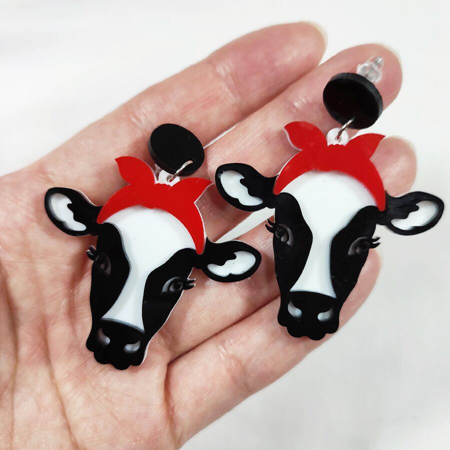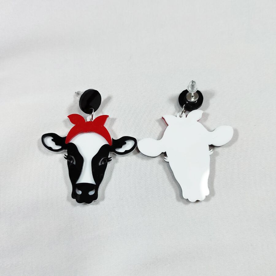赤いリボンを付けた可愛い牛のピアスです。