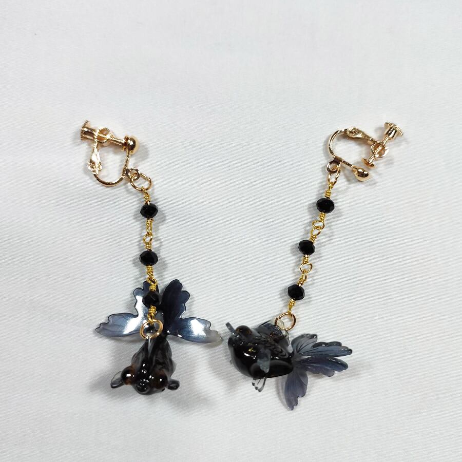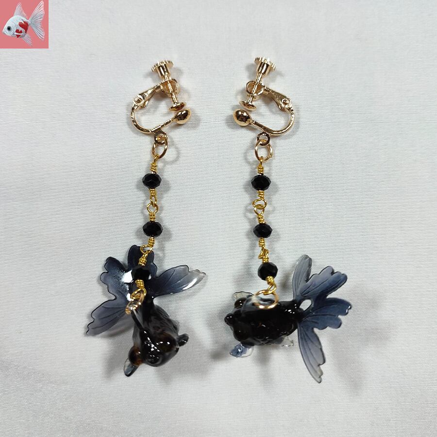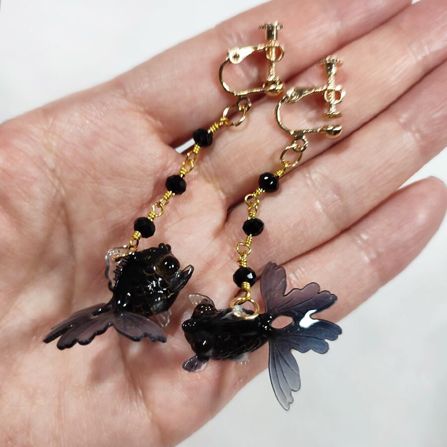 丸っこい形が可愛らしい、立体の黒い金魚の根付けです。