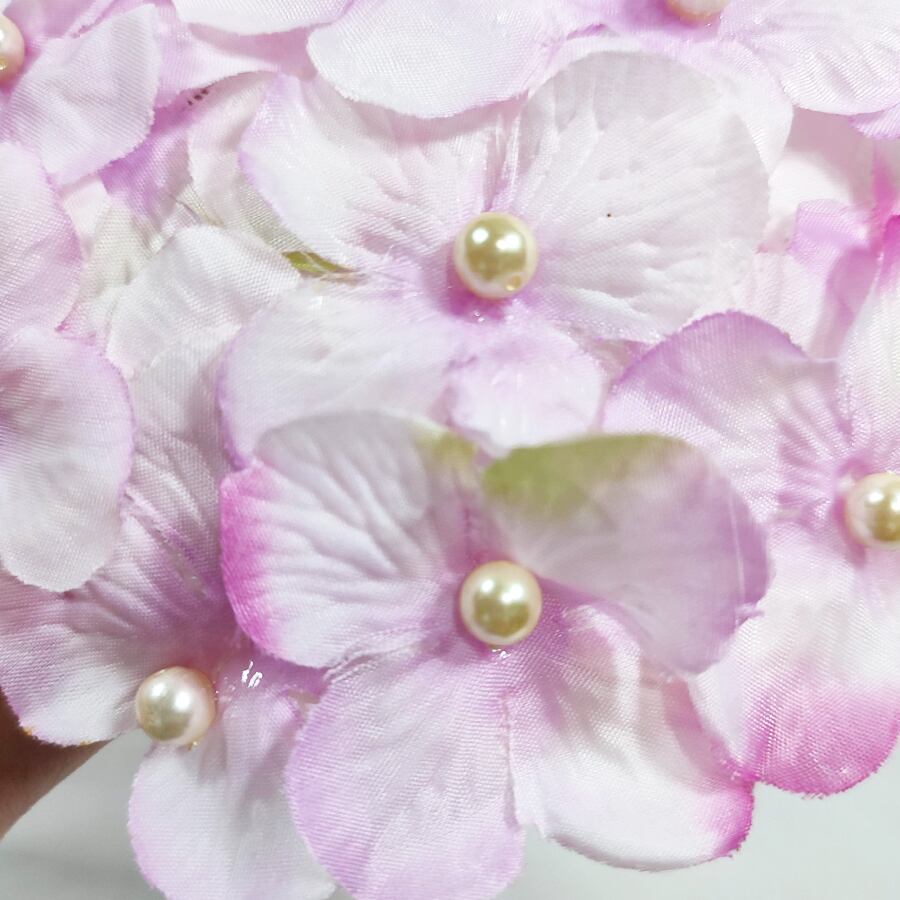 城と赤紫の美しい紫陽花で、芯のパール玉も可愛いです。