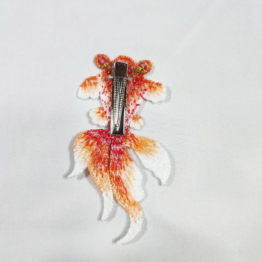 帯どめ 帯飾り 刺しゅう 出目金 橙色